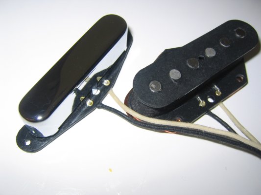 テレキャスター用ピックアップセット。潤沢に使用したワイヤリングにより、通常のピックアップより抵抗値が高くウォームな中低域とソフトな高域を備えたサウンドに仕上げました。ハウリングを抑える為に含侵処理を施しています。 抵抗値:フロント11KΩ リア20KΩ